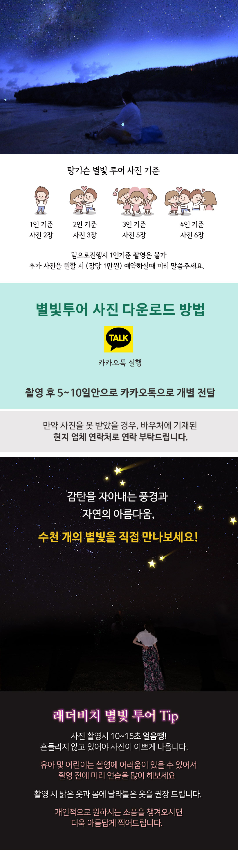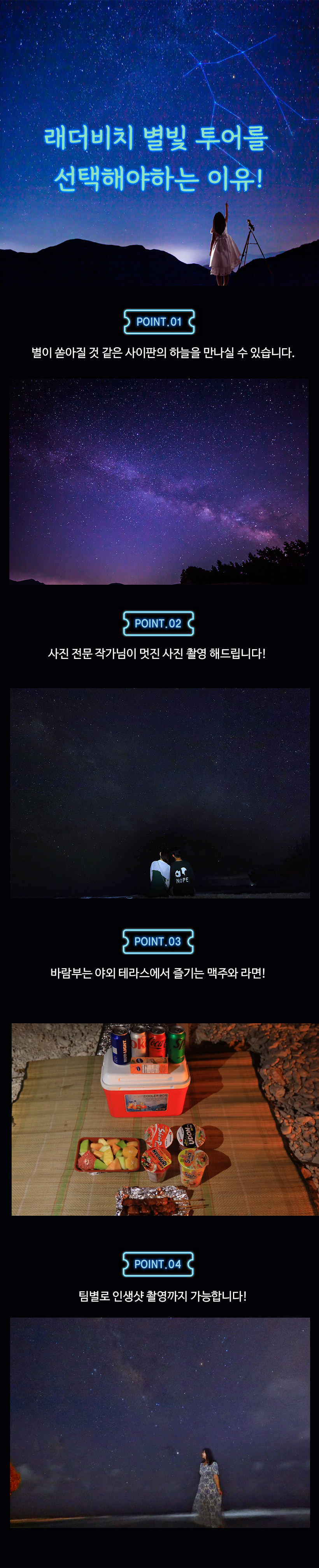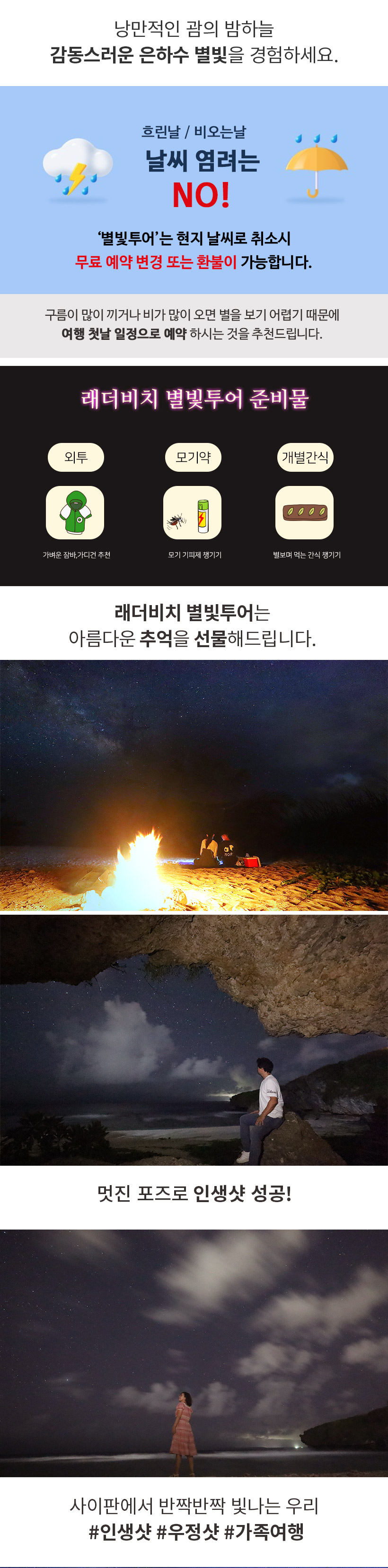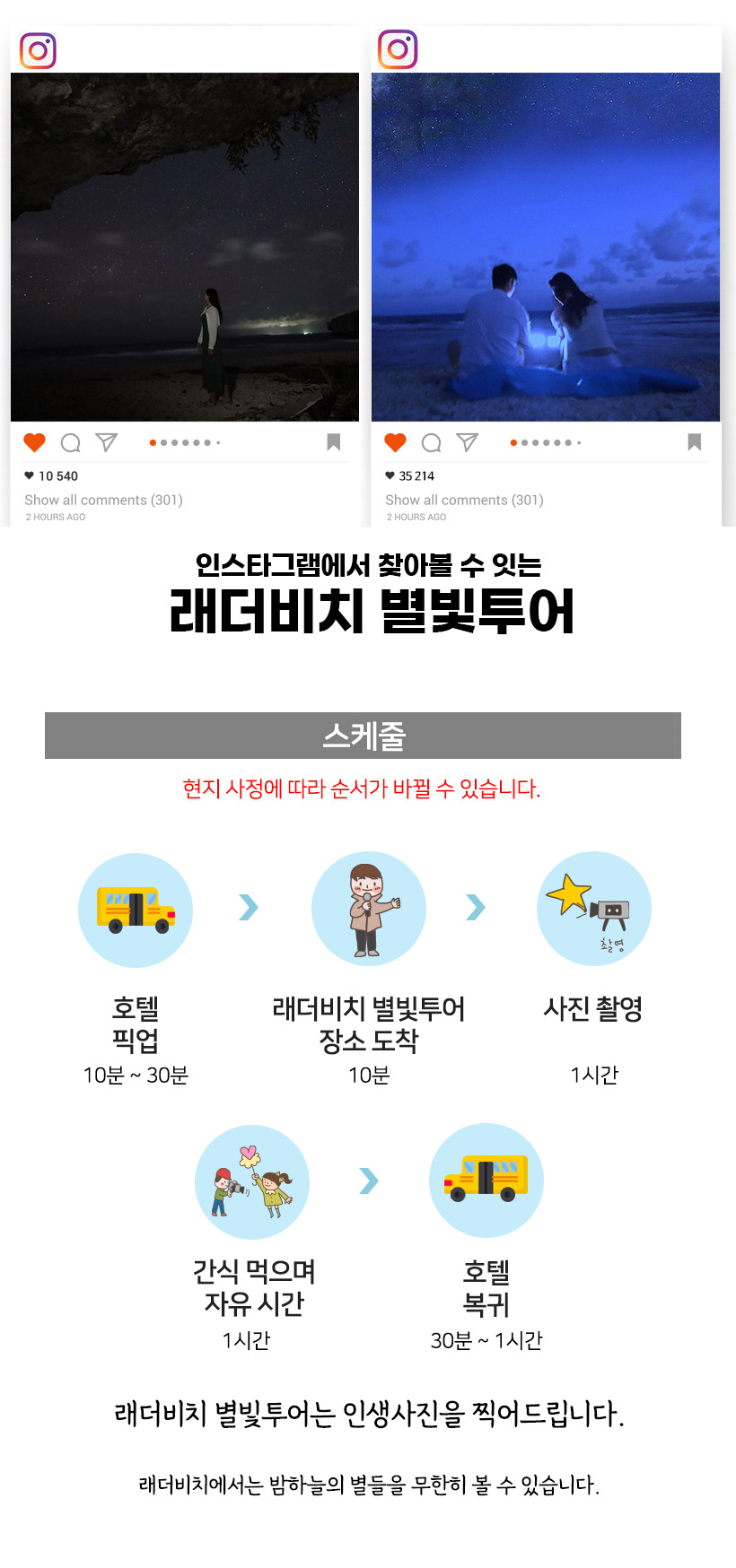 별빛 투어 하기 전 남부투어때 낮에 레더비치를 방문했었어요. 밤에 보니 또 다른 느낌이었고, 파도소리 들으며 쏟아질듯한 별들을 본다는게 너무 특별했어요.
