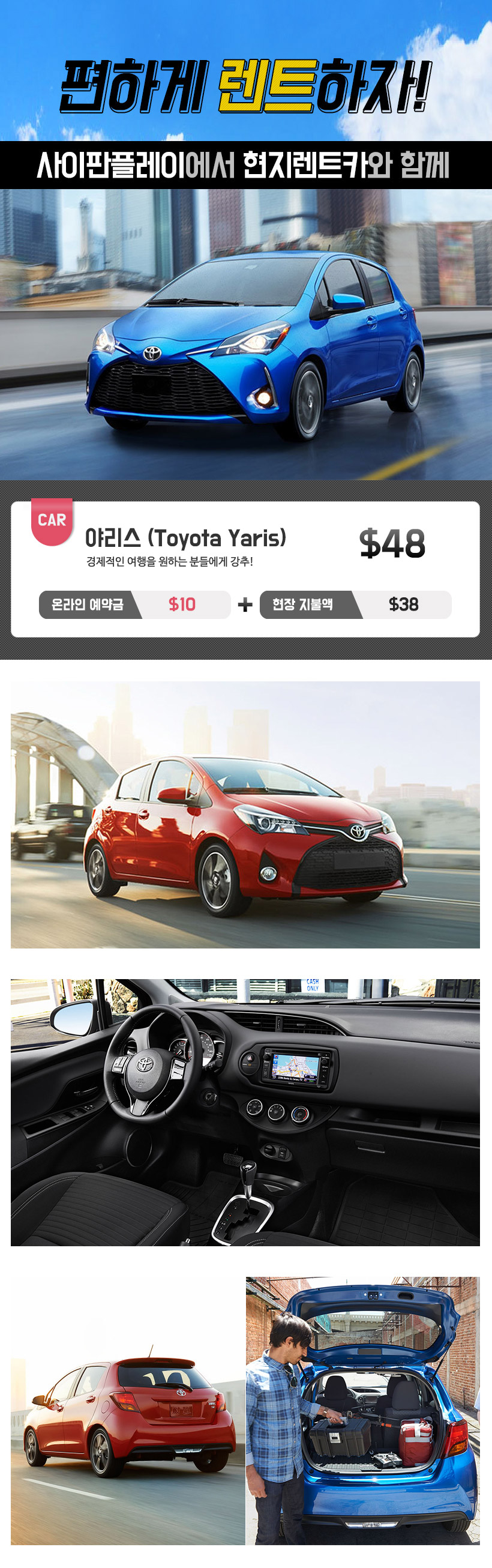 - 모든 차량은 자동 변속기이며 유종은 휘발유입니다.