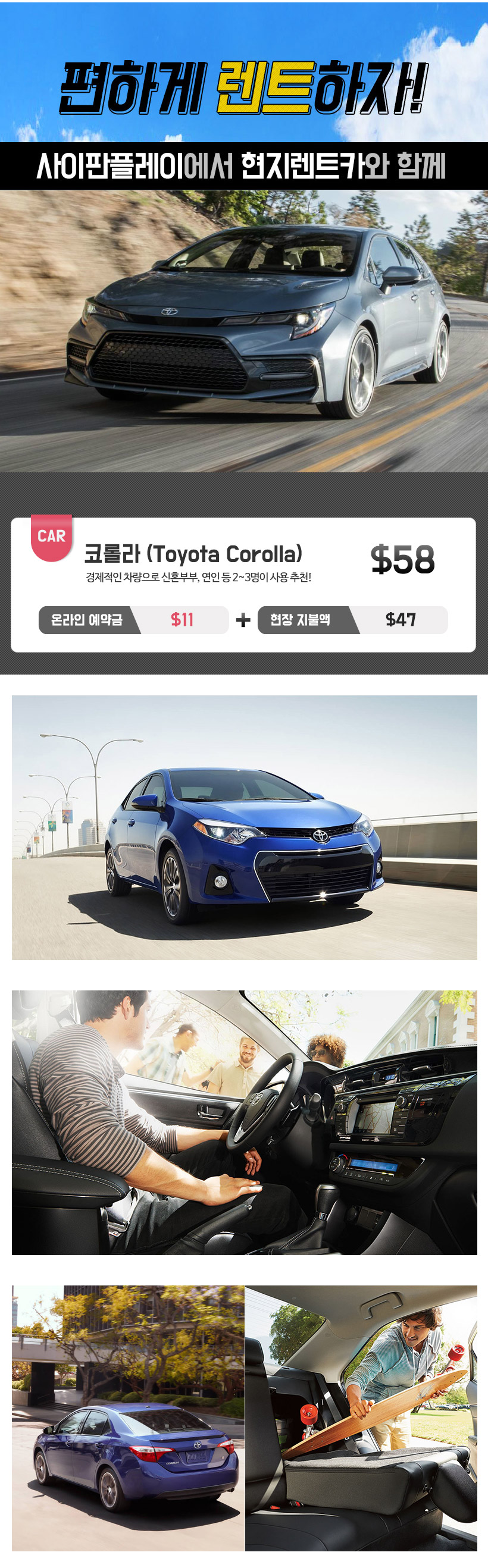 ※ 차량 인수 시 가입 가능하며, 1일당 $12 추가비용이 발생합니다.(현장결제)
