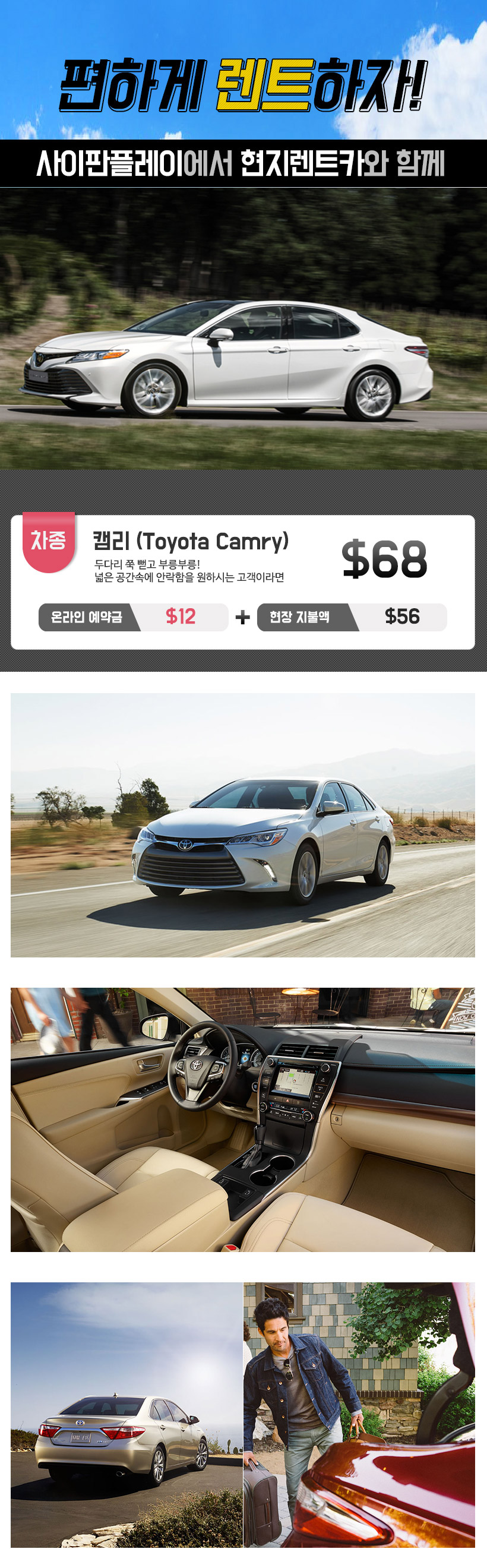 - 모든 차량은 자동 변속기이며 유종은 휘발유입니다.