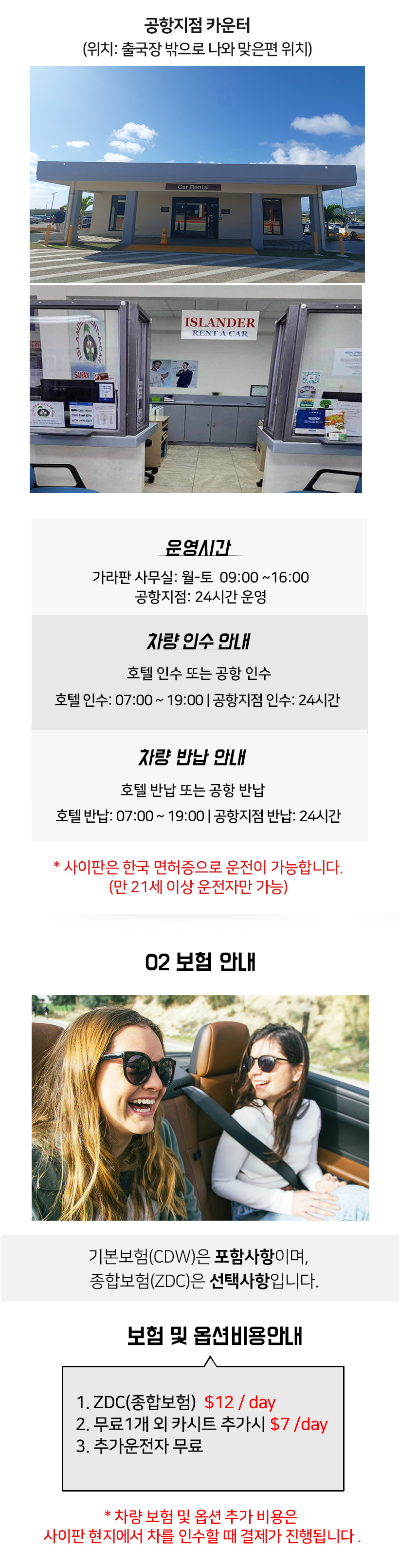 ※ 차량 인수 시 가입 가능하며, 1일당 $12 추가비용이 발생합니다.(현장결제)