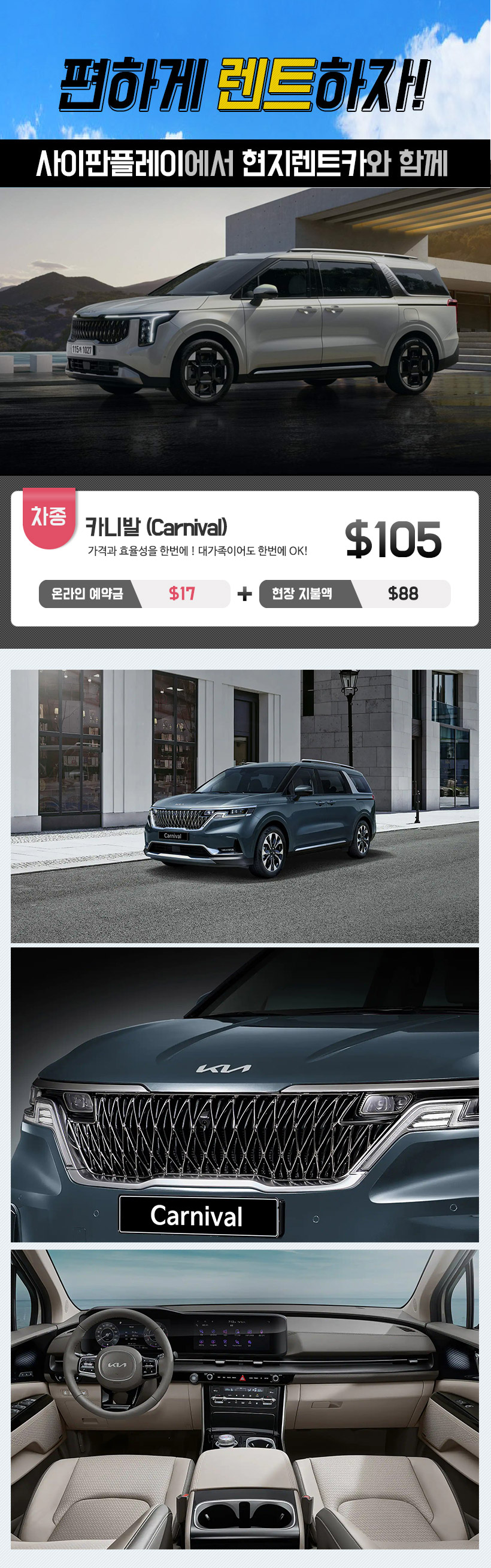 - 모든 차량은 자동 변속기이며 유종은 휘발유입니다.