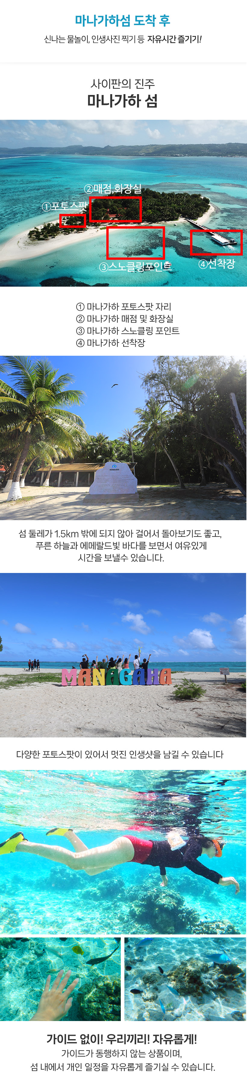 종일로 하니까 마나가하섬에서 시간도 길어서 예쁜 섬에 오래 있어서 좋았습니다. 픽업도 잘해주셨어요.