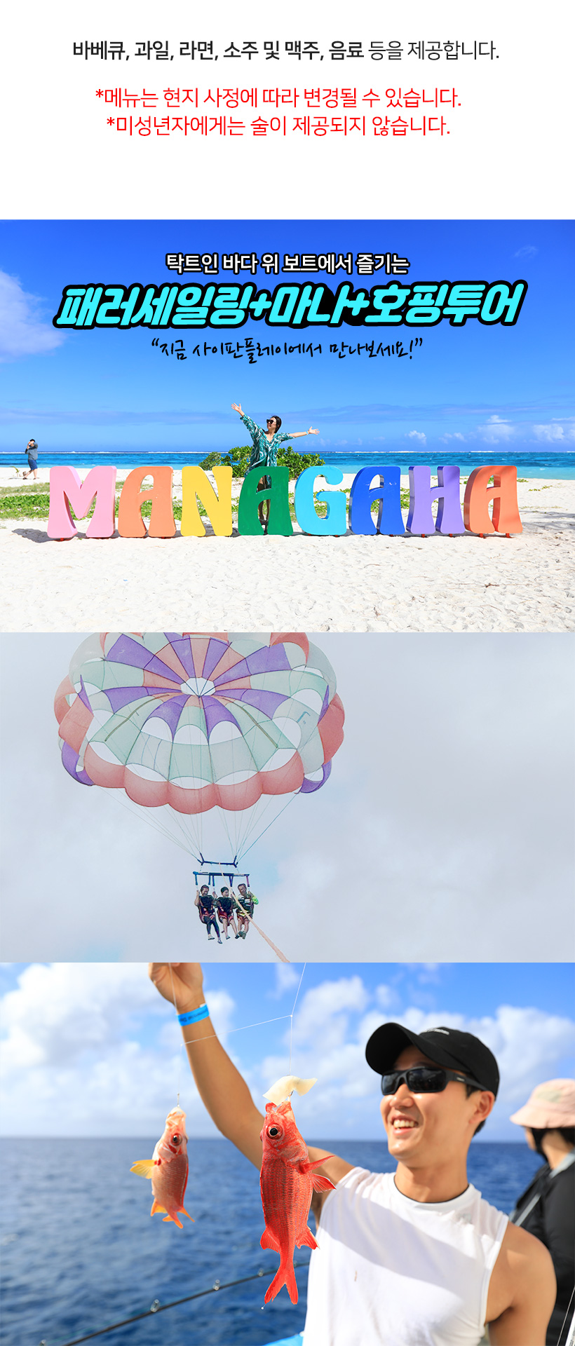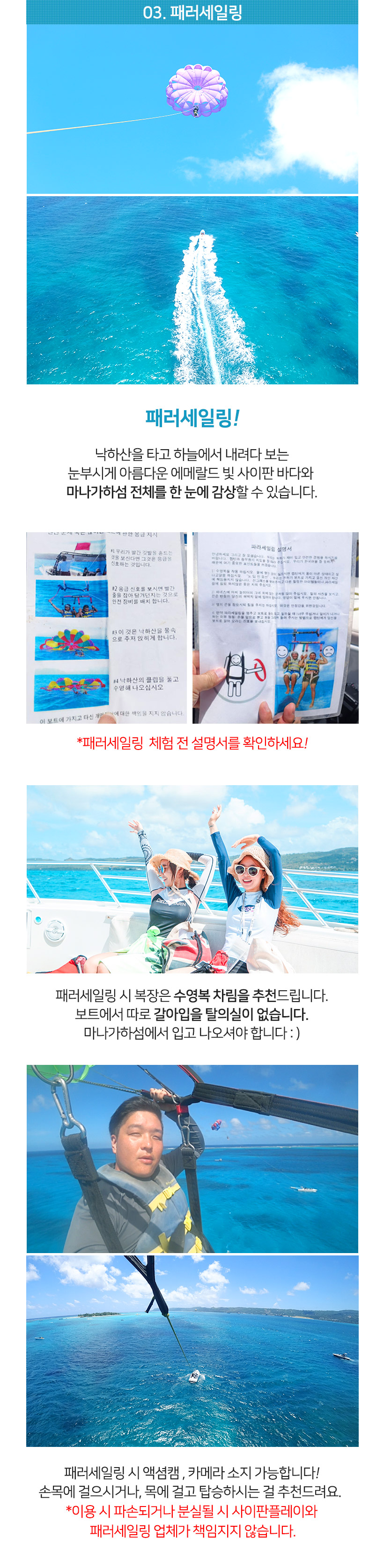 마나가하섬은 당연히 무조건 가봐야하고, 개인적으로 패러세일링 강추입니다. 날이 좋으면 위에서 바라보는 바다가 너무 멋져요 ㅜㅜ