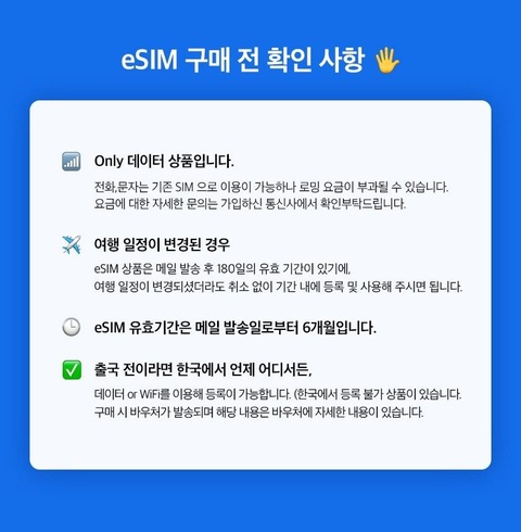 출국 전 eSIM 설정을 꼭 완료하세요.