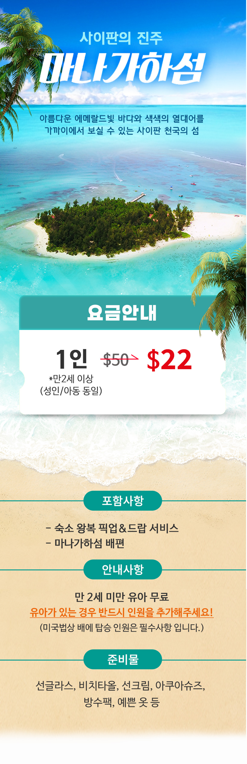 <마나가하섬 장비대여 및 도시락주문 안내>