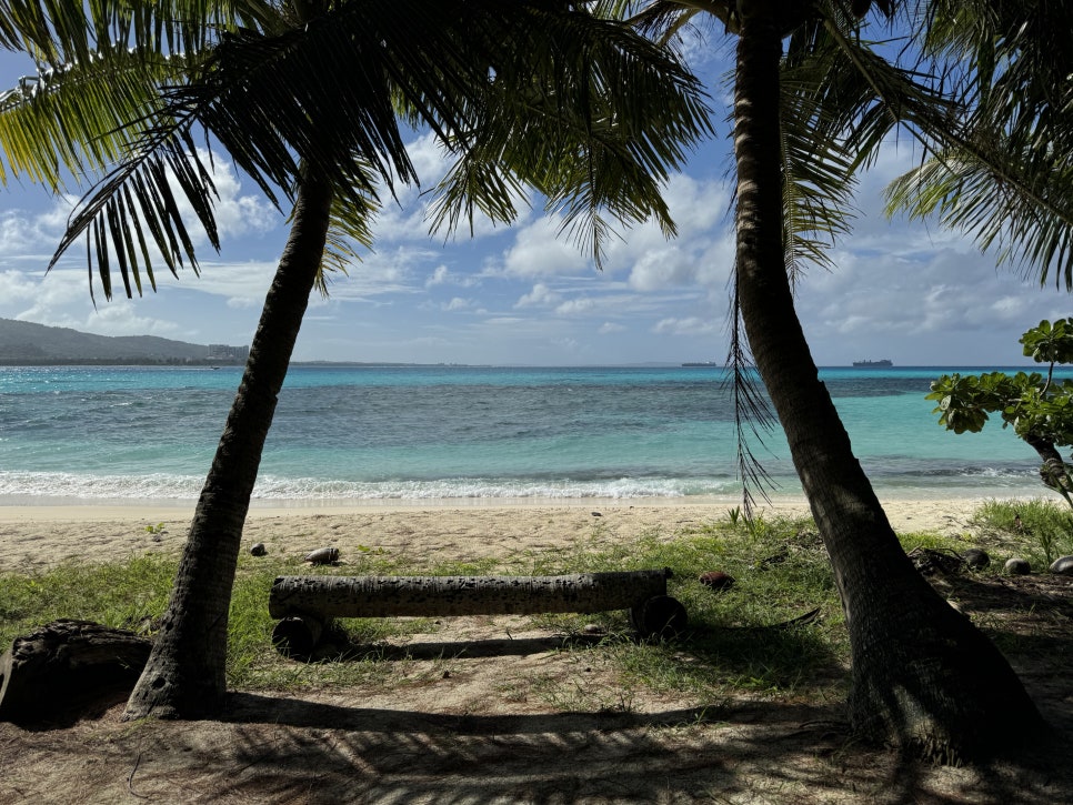 사이판의 에메랄드 색의 바다와 마나가하섬을 한눈에 바라보며