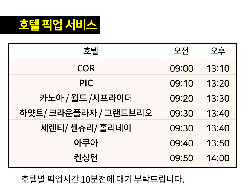 - 호텔 픽업 드롭 서비스
