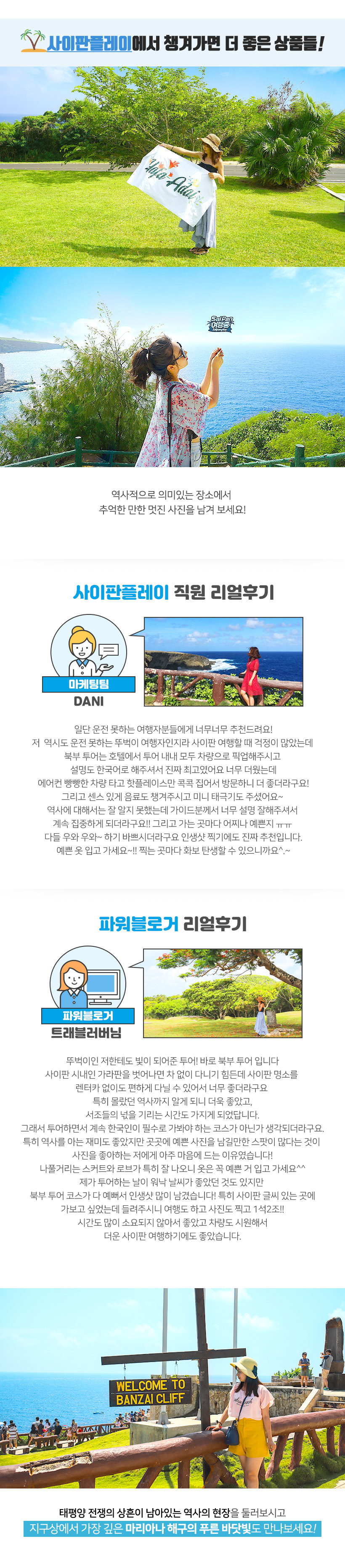 항상 만족스러운 여행이 될 수 있는 상품으로 보답하는 사이판플레이 되겠습니다 ^^