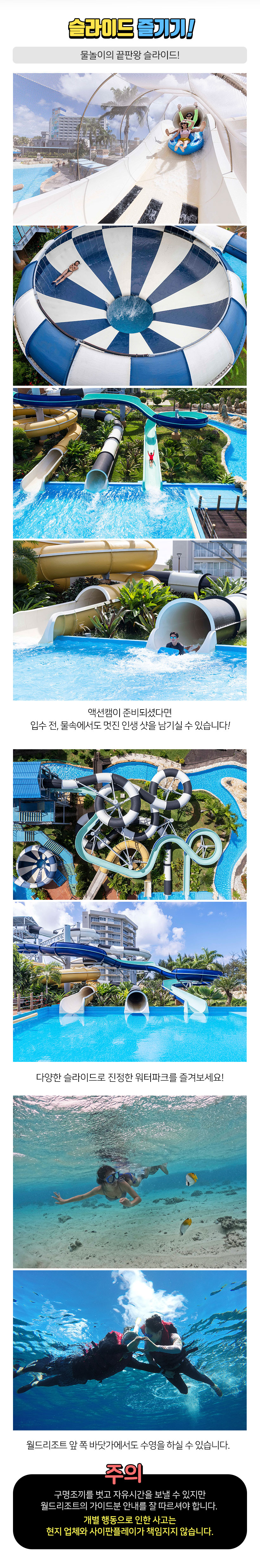 워터파크가 붐비지 않아 즐겁게 이용했습니다. 비치로 나가는곳까지 있어 워터파크에서 놀다 비치에서 놀다하면서 재미있게 보냈습니다. 점심도 포함이라 식사도 해결되니 1석 2조였습니다.