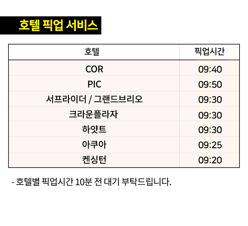 픽업 서비스 (이용 후 드랍서비스는 당일 기사님과 미팅장소, 드랍장소를 조율해주시면 됩니다!)