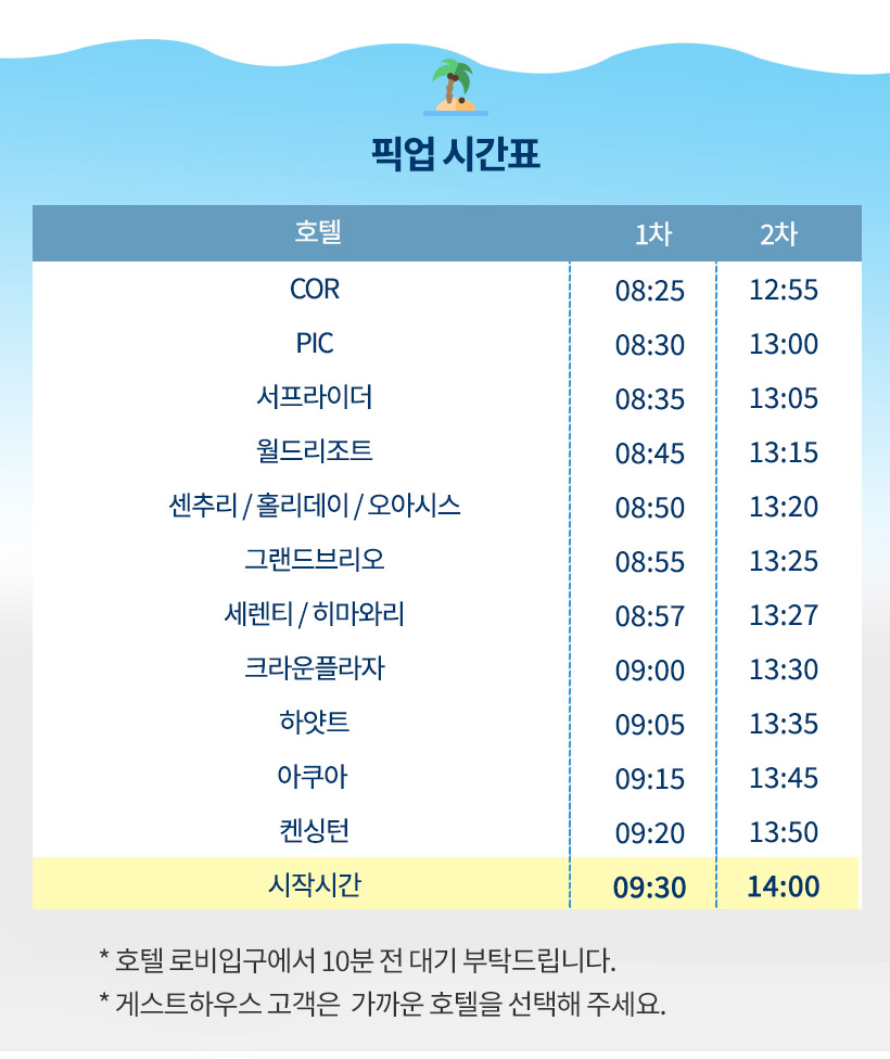 - 호텔 픽업 드롭 서비스