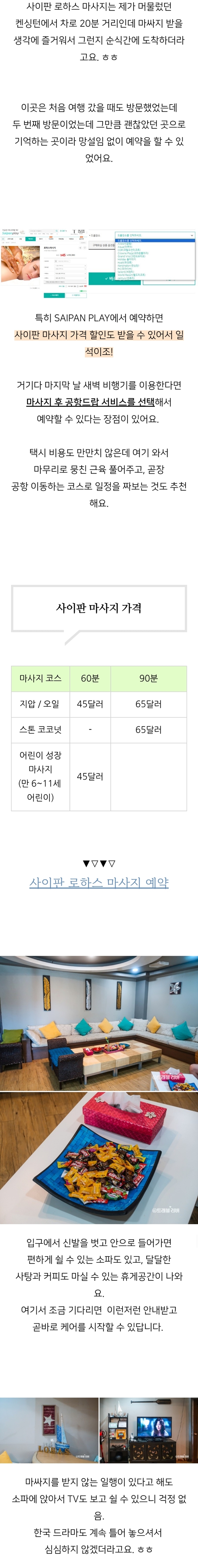 사이판 마사지 가격 로하스마사지 공항드랍 가능