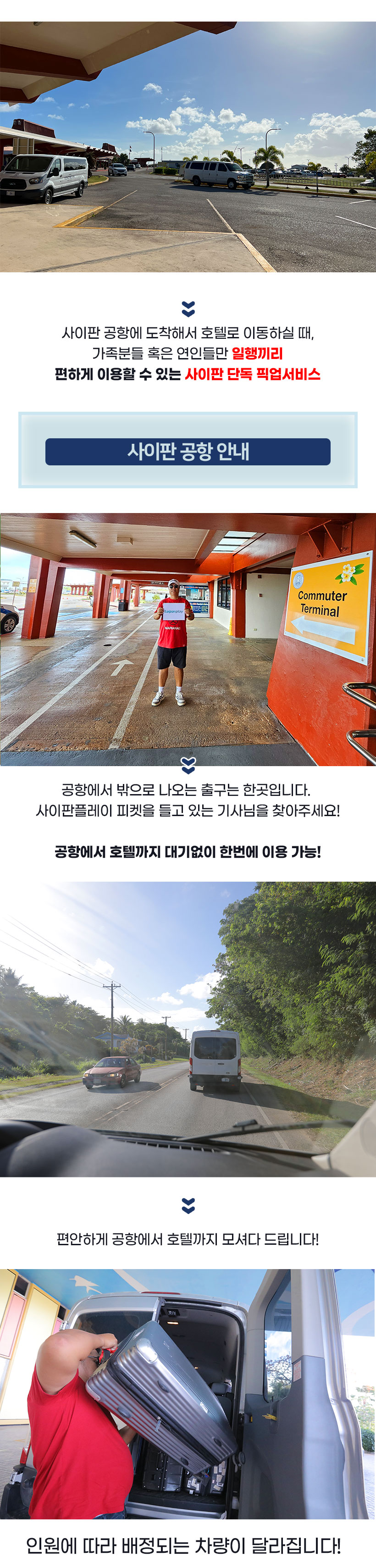 사이판 공항에서 단독으로 고객님들만 숙소까지 모셔다 드립니다