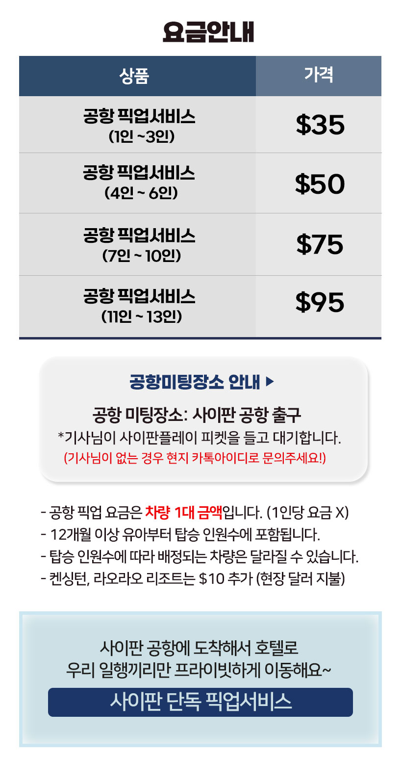 • 사이판 공항 단독 픽업서비스