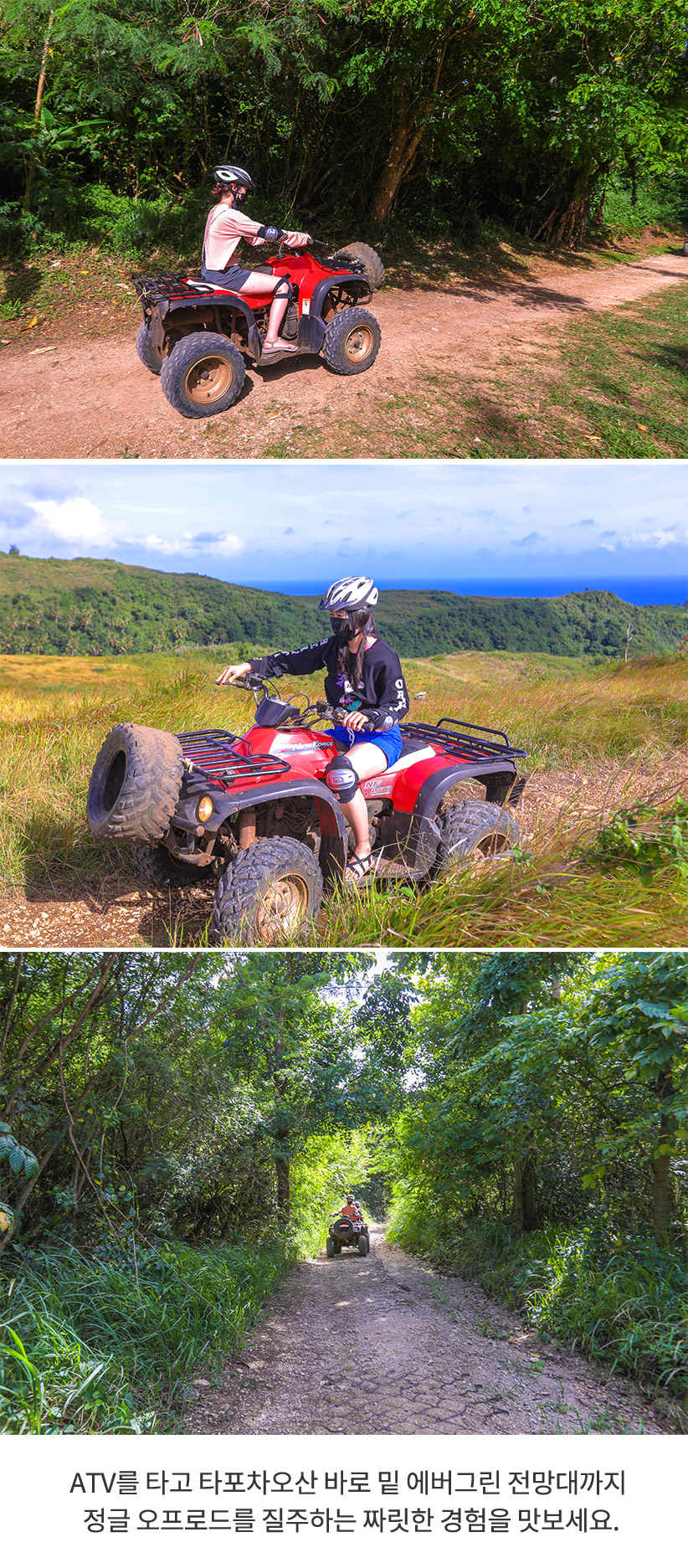 atv 산악 atv는 사이판의 자연을 온몸으로 느낄 수 있는 프로그램입니다.