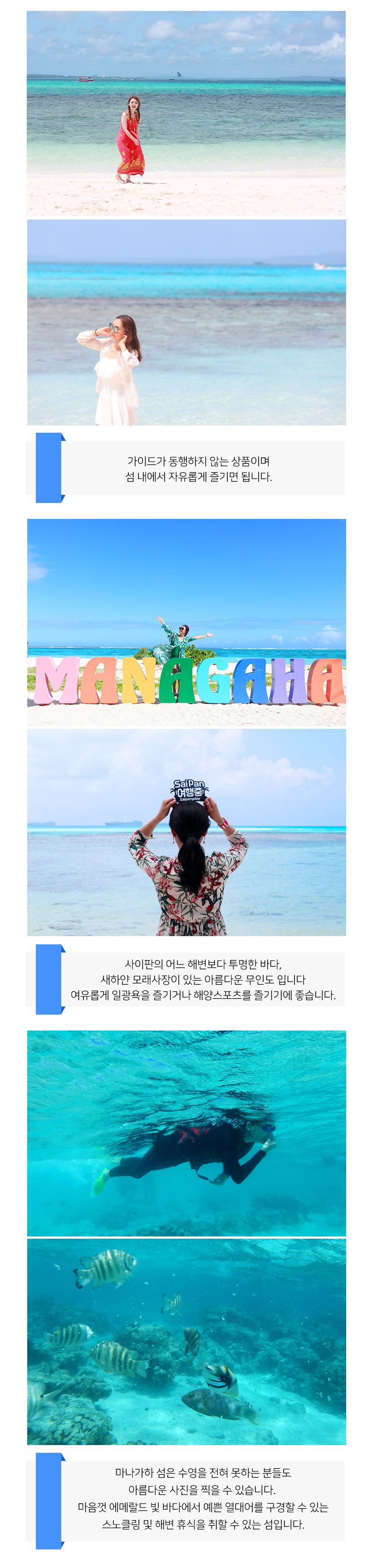 마나가하섬 때문에 사이판 여행한다고해도 과언이 아님 업체에서 픽언샌딩 다해주고 장비도 필요하면 신청가능 만능임.