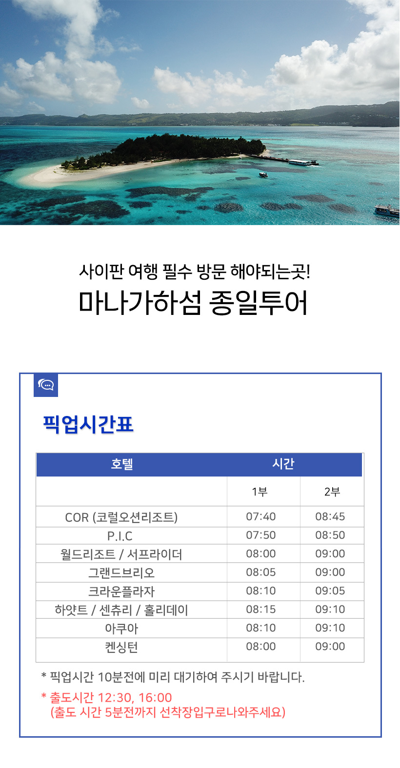 사이판플레이를 통하면, 마나가하섬 투어와 숙소 픽업 & 드롭을 편하게 준비합니다.
