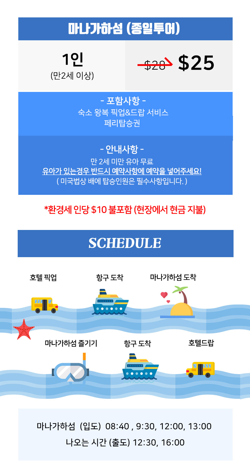 상품 : 마나가하섬(종일투어)