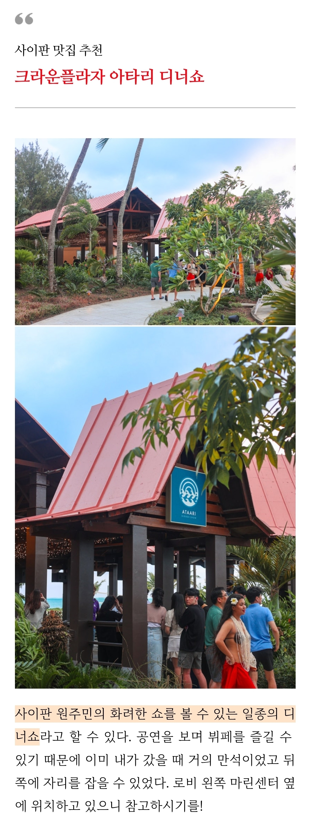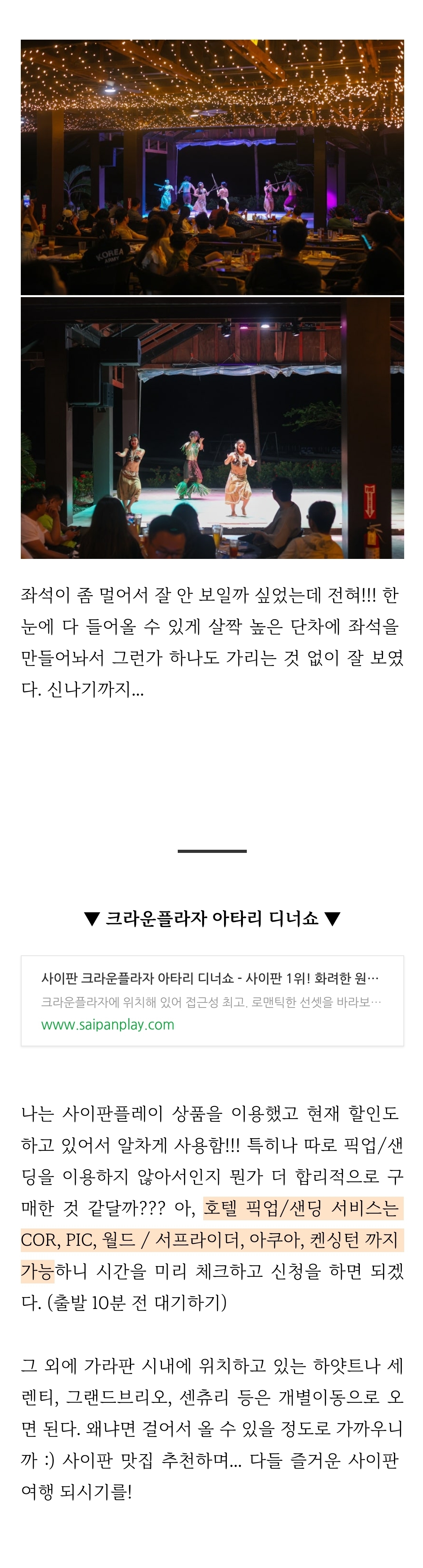 사이판에서 즐기는 화려한 공연과 디너! #아타리디너쇼 #크라운플라자
