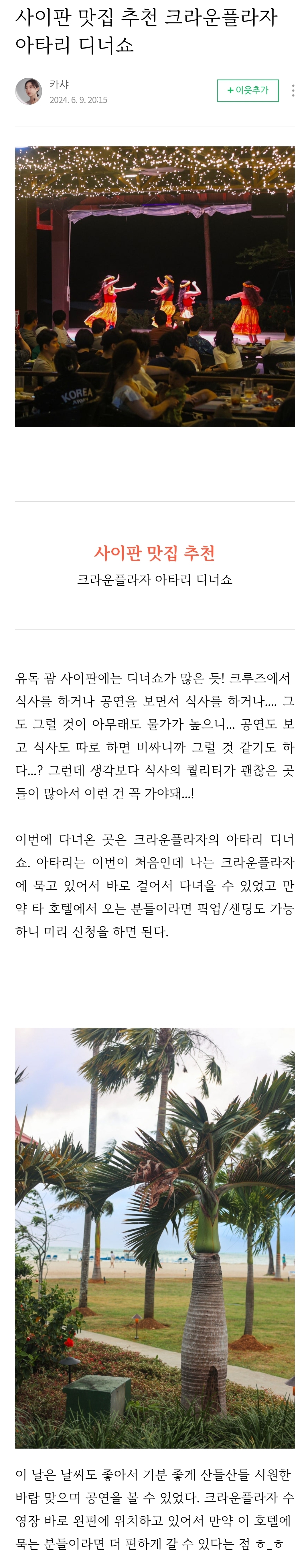 카샤님의 <크라운플라자 아타리 디너쇼> 리얼 후기!