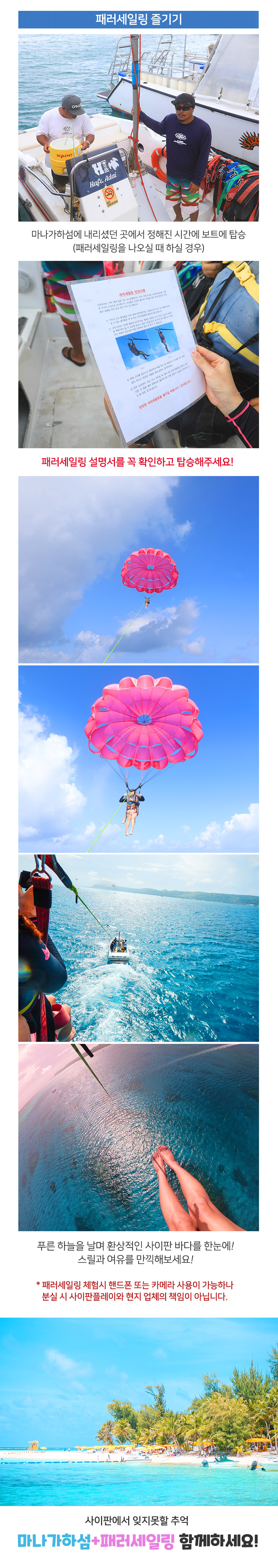 마나가하섬 즐기고 패러세일링까지 하시면 마나가하섬을 200% 즐기신거라 생각됩니다.