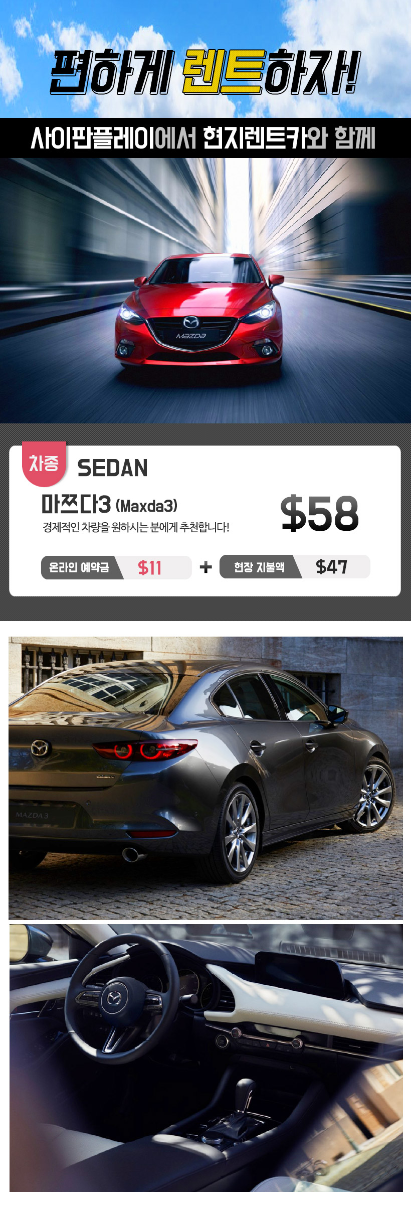 상품 : 마쯔다3 (대여일수 : 1)