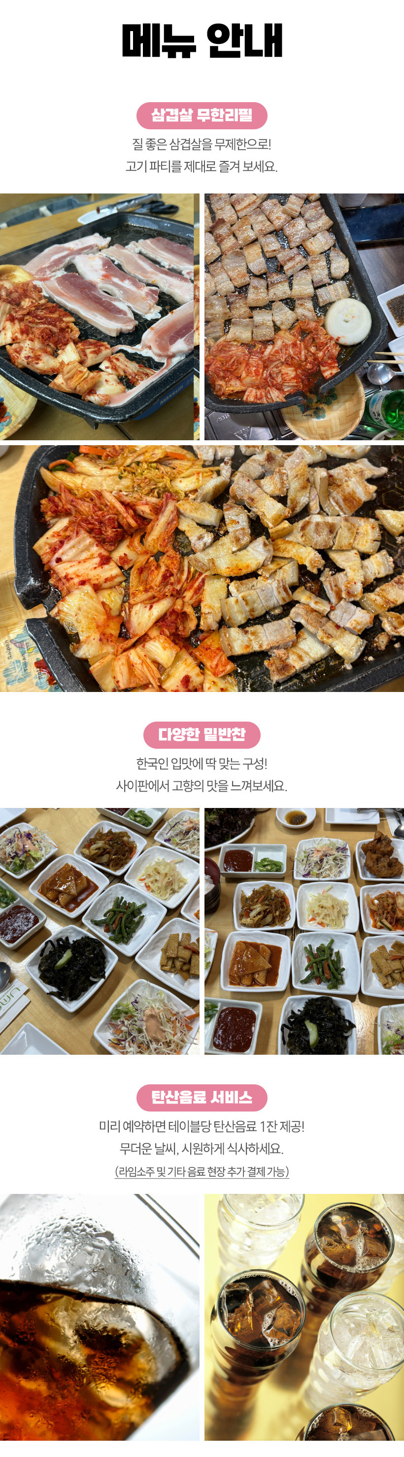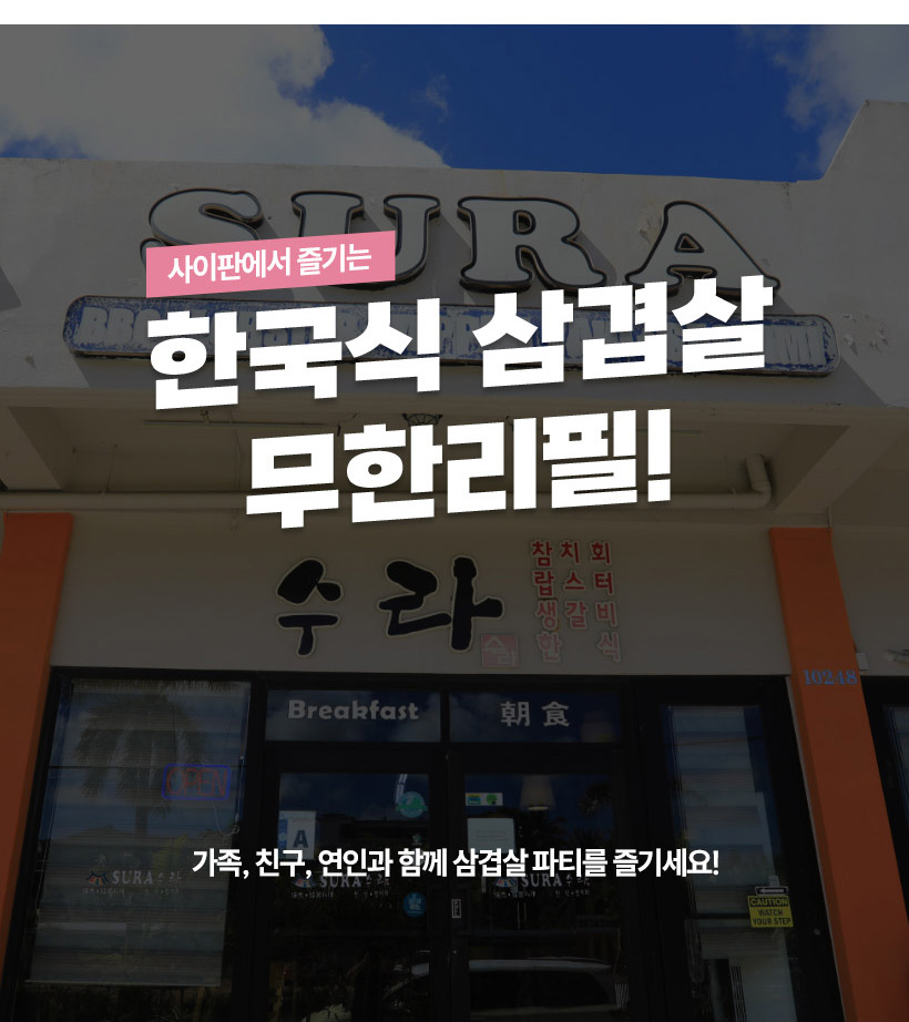 사이판 수라한식당에서 삼결살 무한리필를 즐겨보세요~